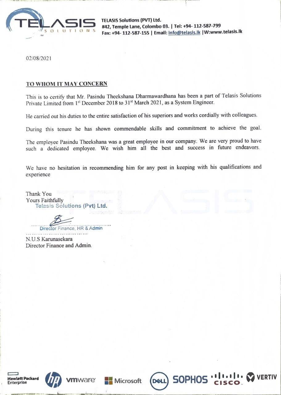 During my role as a System & Networking Engineer at Telasis Solutions, I worked closely with international business partners and leading technology brands to deliver high-quality IT managed services. My core functions included: